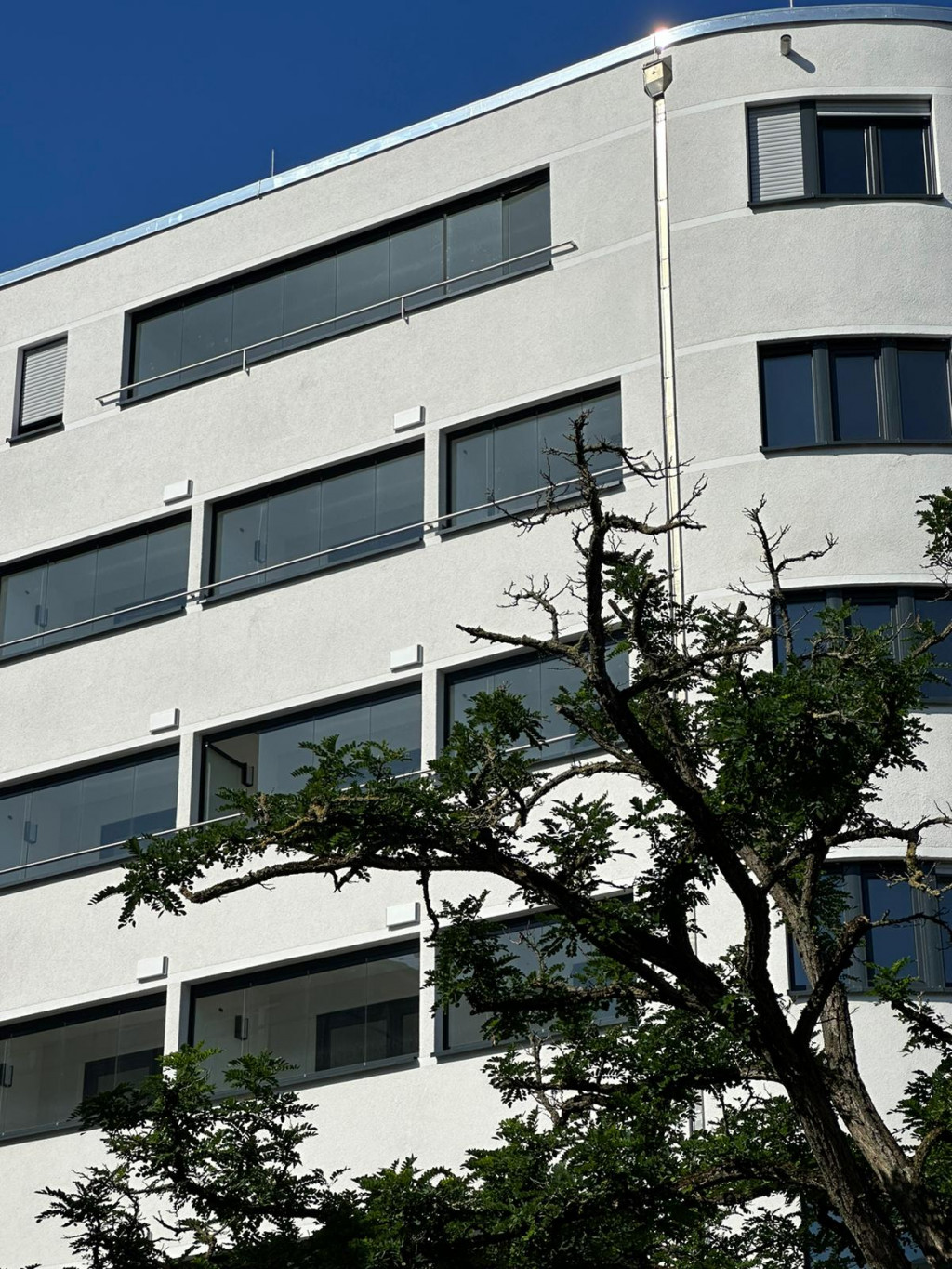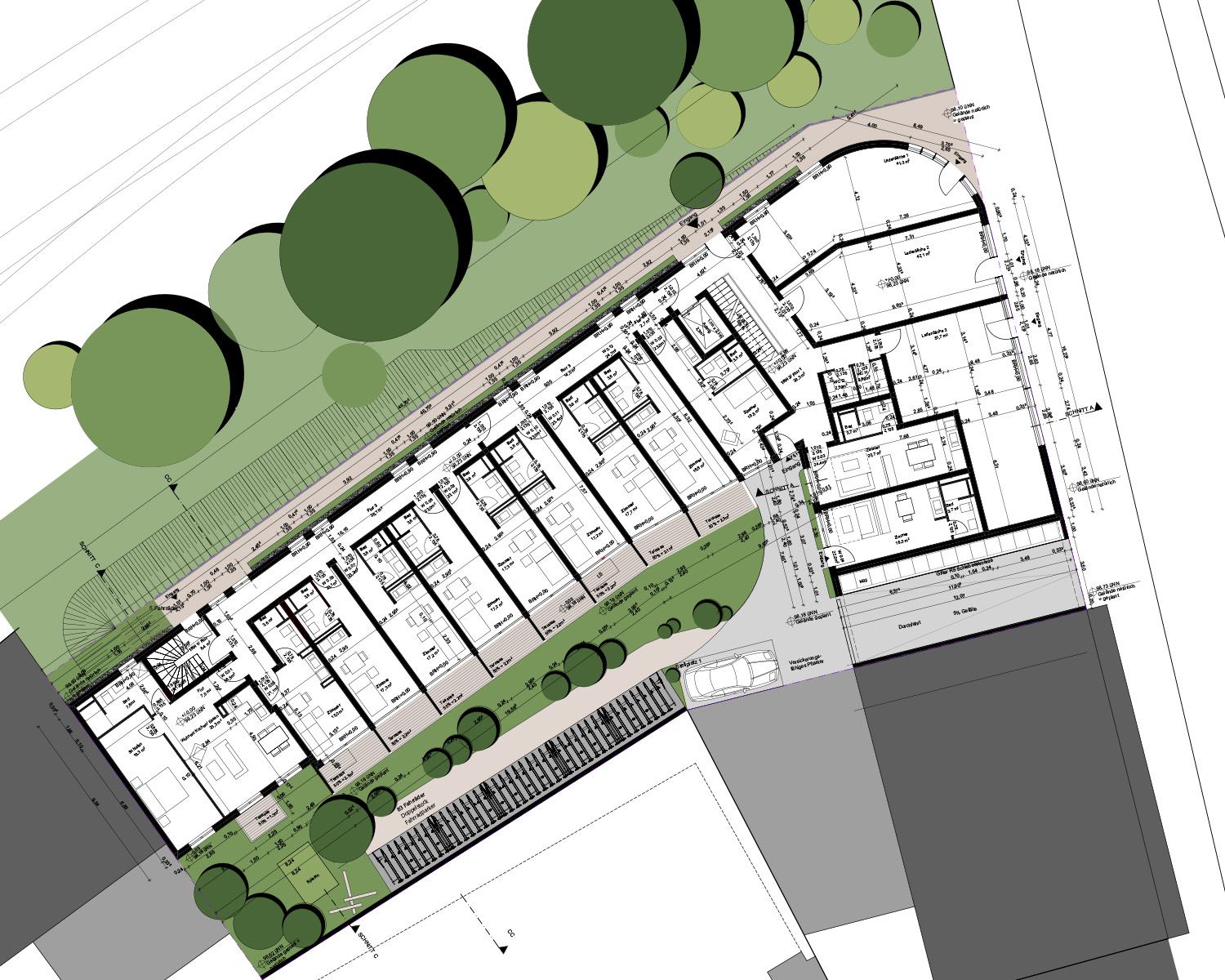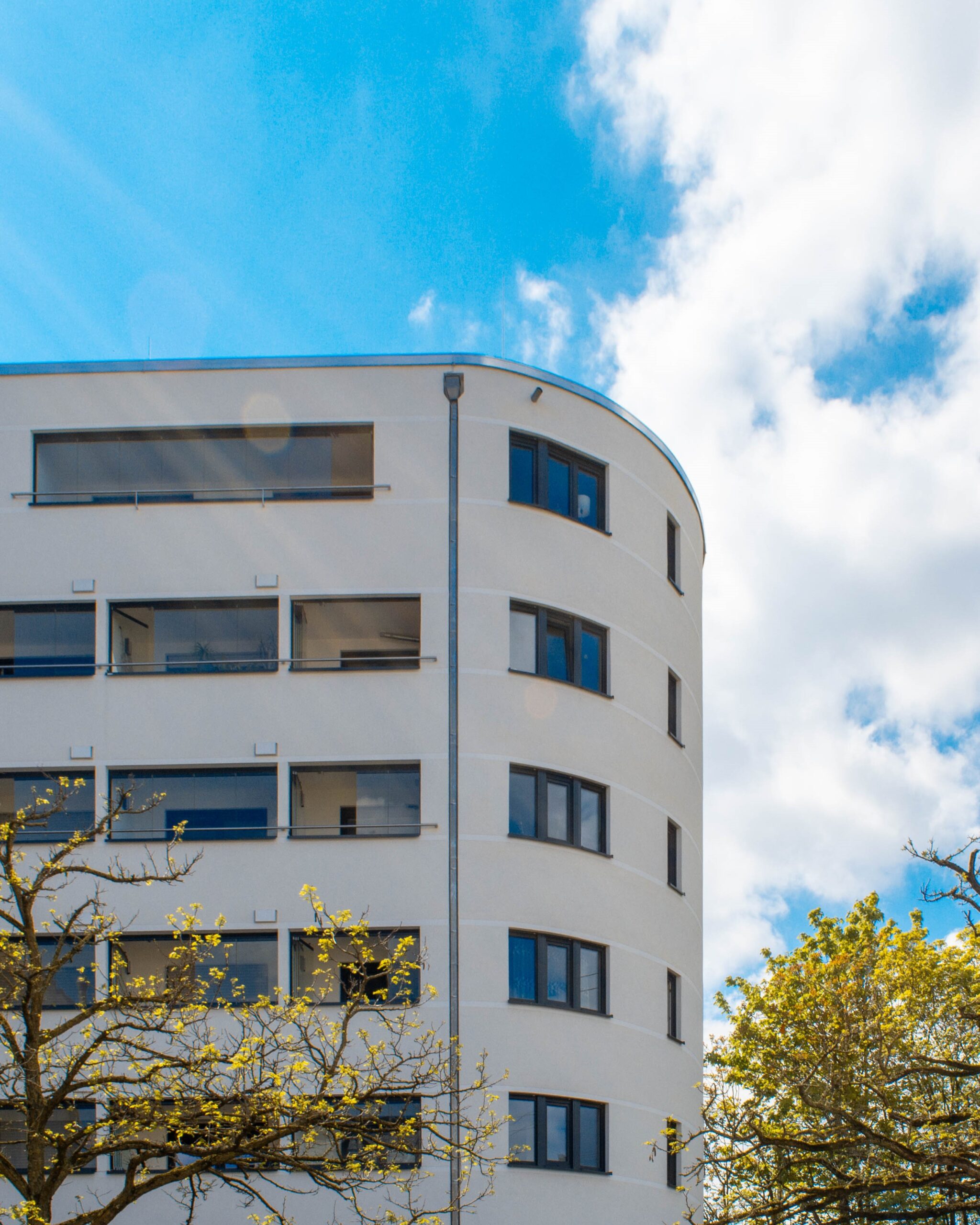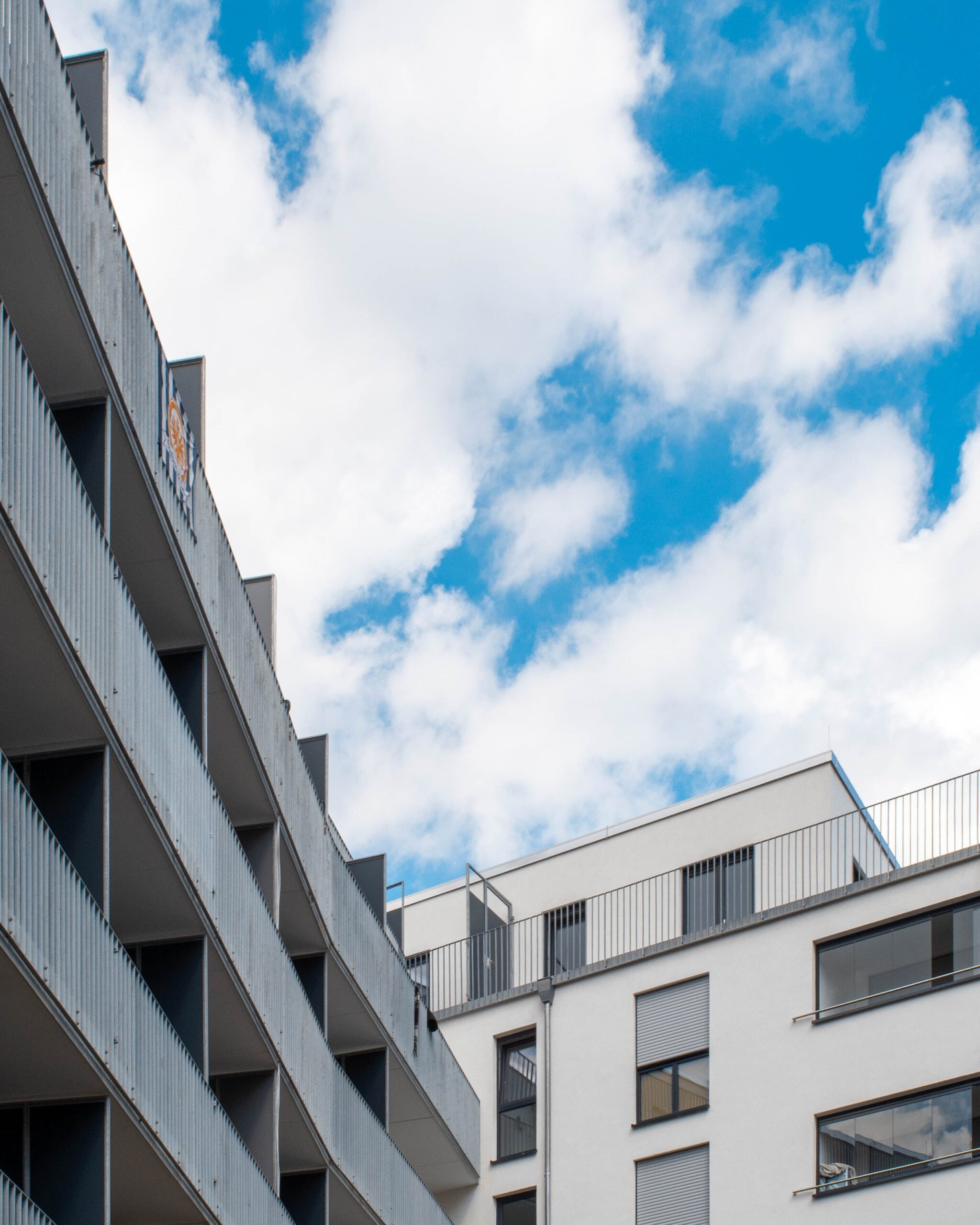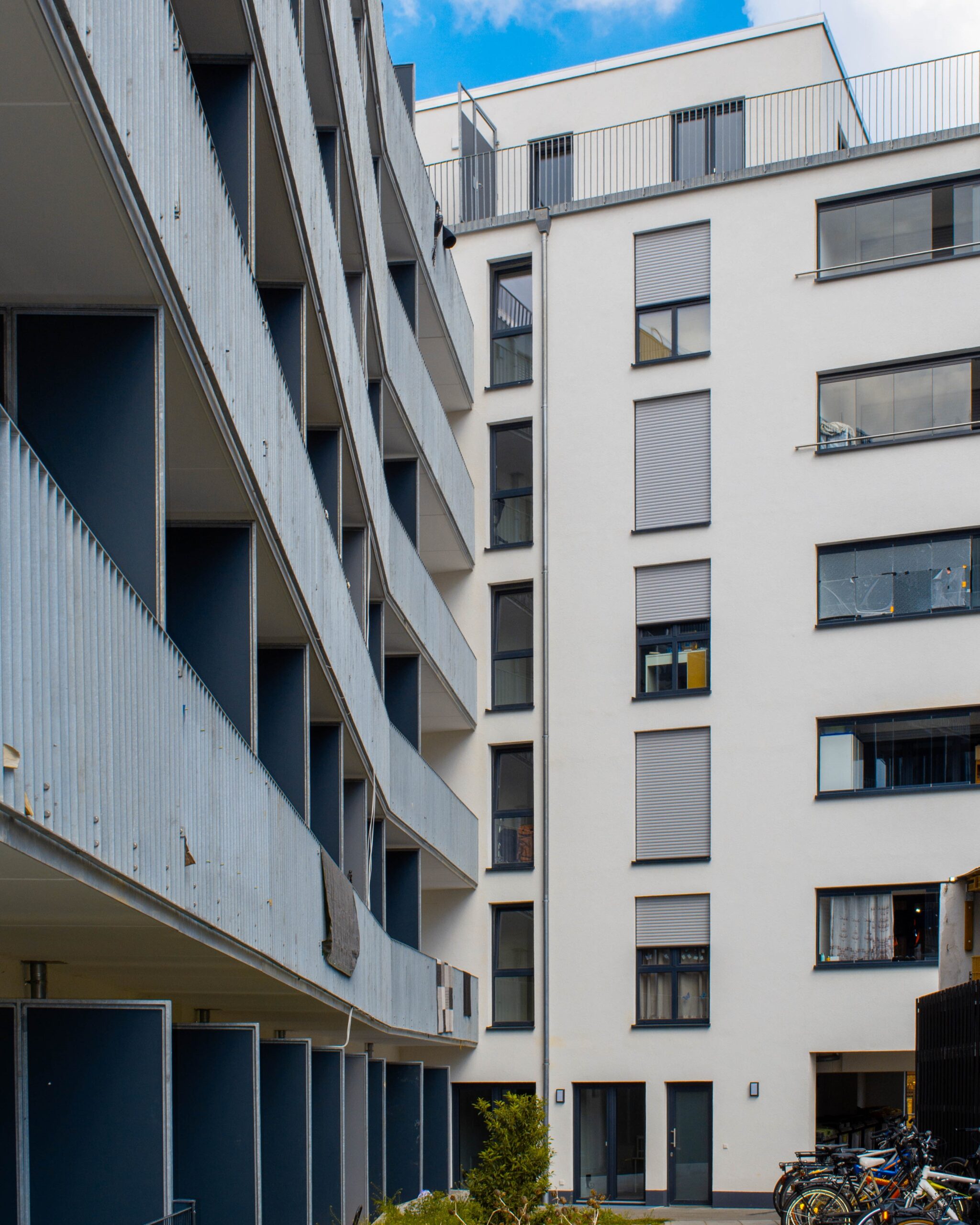 Den Baukörper haben wir so entwickelt, dass die Flure zur Bahnstrecke orientiert sind, und die Wohnungen zum ruhigen Innenhof auf der Südseite. Die Wohnungen zur Darmstädter Landstraße haben alle verglaste Loggien.